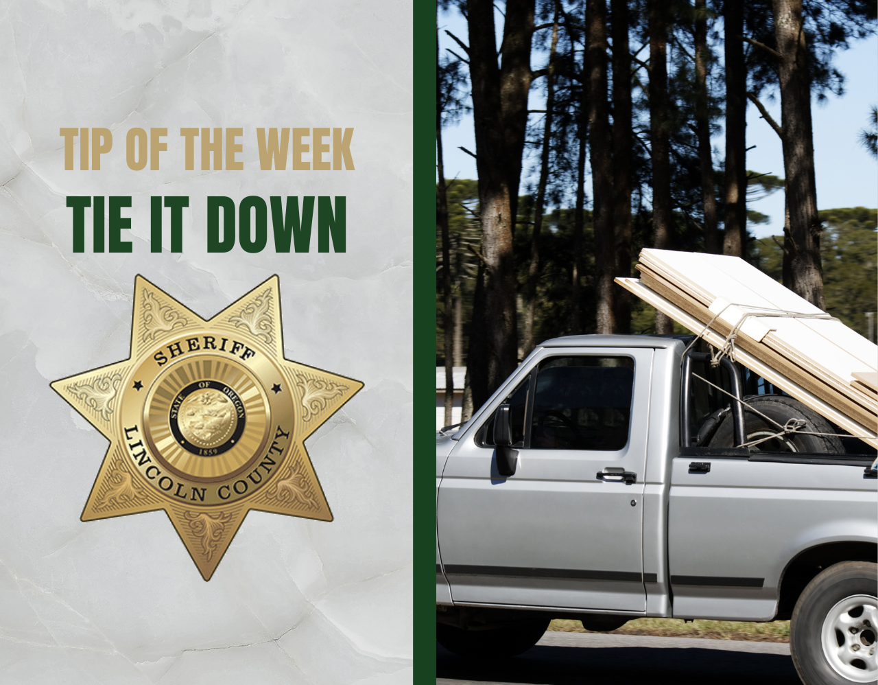 For more information and tips visit our website at www.lincolncountysheriff.net and like us on Facebook at Lincoln County Sheriff’s Office – Oregon.
