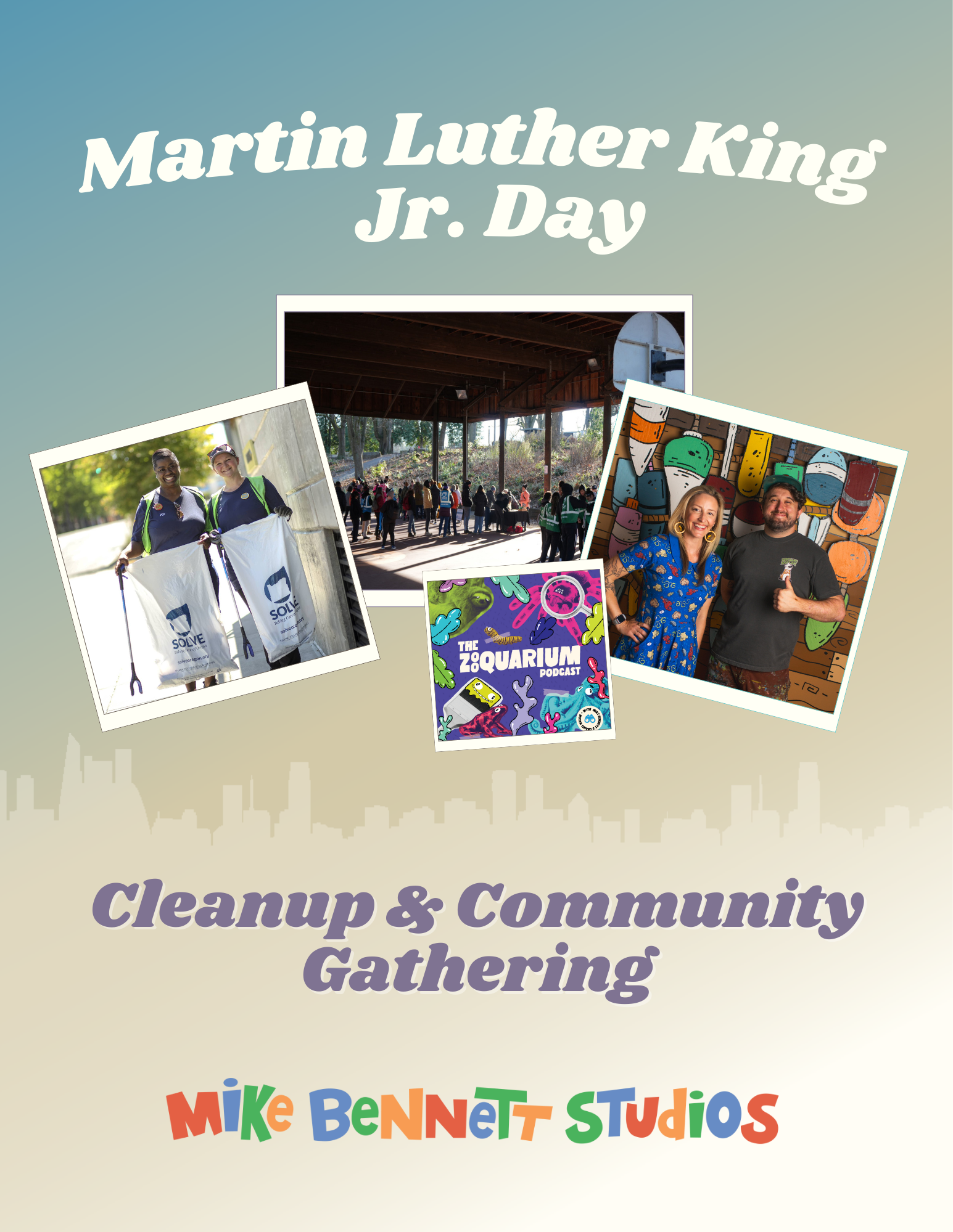 Following the cleanup, participants and neighbors are invited to cross the street to Mike Bennett Studios for a family-friendly community gathering celebrating service, creativity, and connection, including SOLVE-themed coloring sheets, warm drinks, snacks, along with an exclusive sneak peek of the first unreleased episode of the Zooquarium Podcast and Q&A with Mike Bennett and co-host Chanel Hason.
