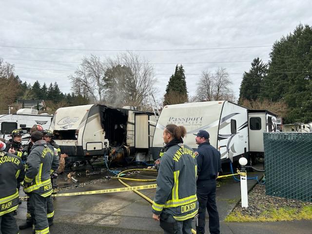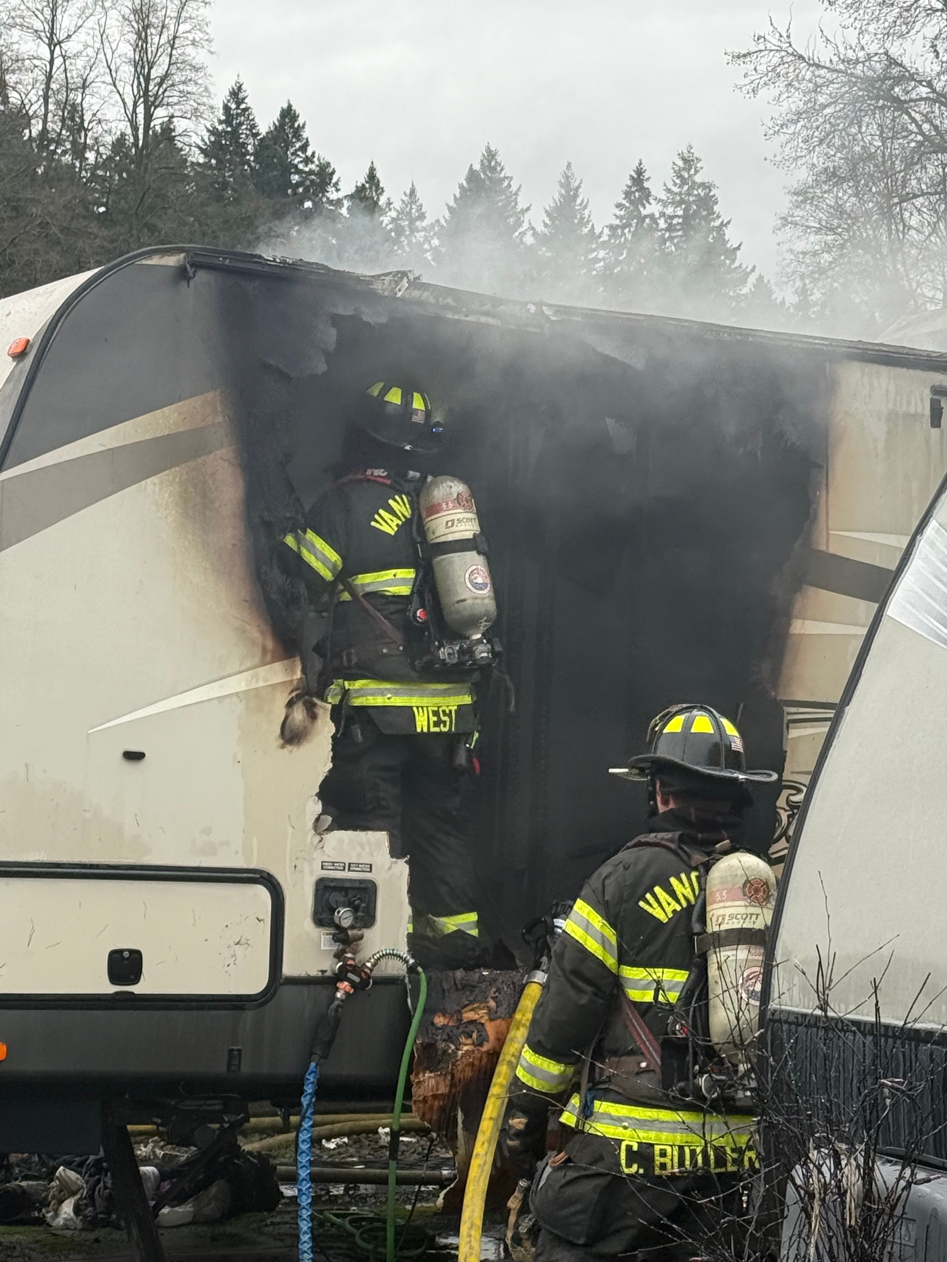 The Vancouver Fire Department responded to a fire in a travel trailer being used as a permanent residence in the 10400 block of NE 53rd Street.