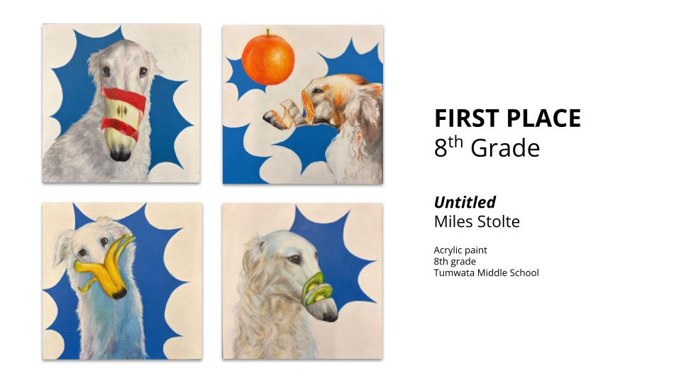 This year’s top honor went to Miles Stolte, an eighth grader at Tumwata Middle School in Oregon City, whose painting earned Best in Show after judges praised its originality, technical skill, and emotional depth.