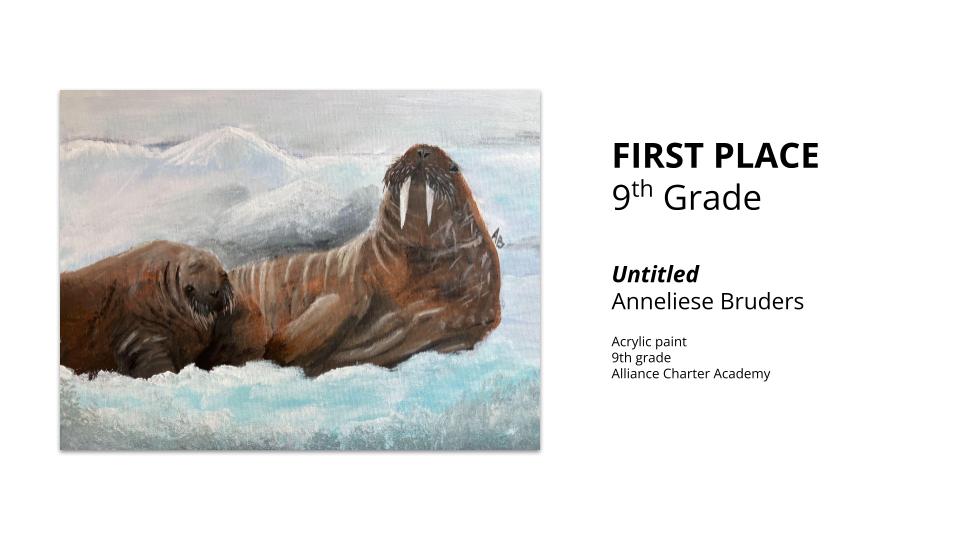 Stolte’s artwork earned the highest cumulative score from judges and received multiple honors, including first place in the eighth-grade category, Best Drawing and Painting medium award, and an Art Speaks Award. For the Art Speaks Award, each judge selects one piece that conveyed a particularly powerful message and explains why it stood out.