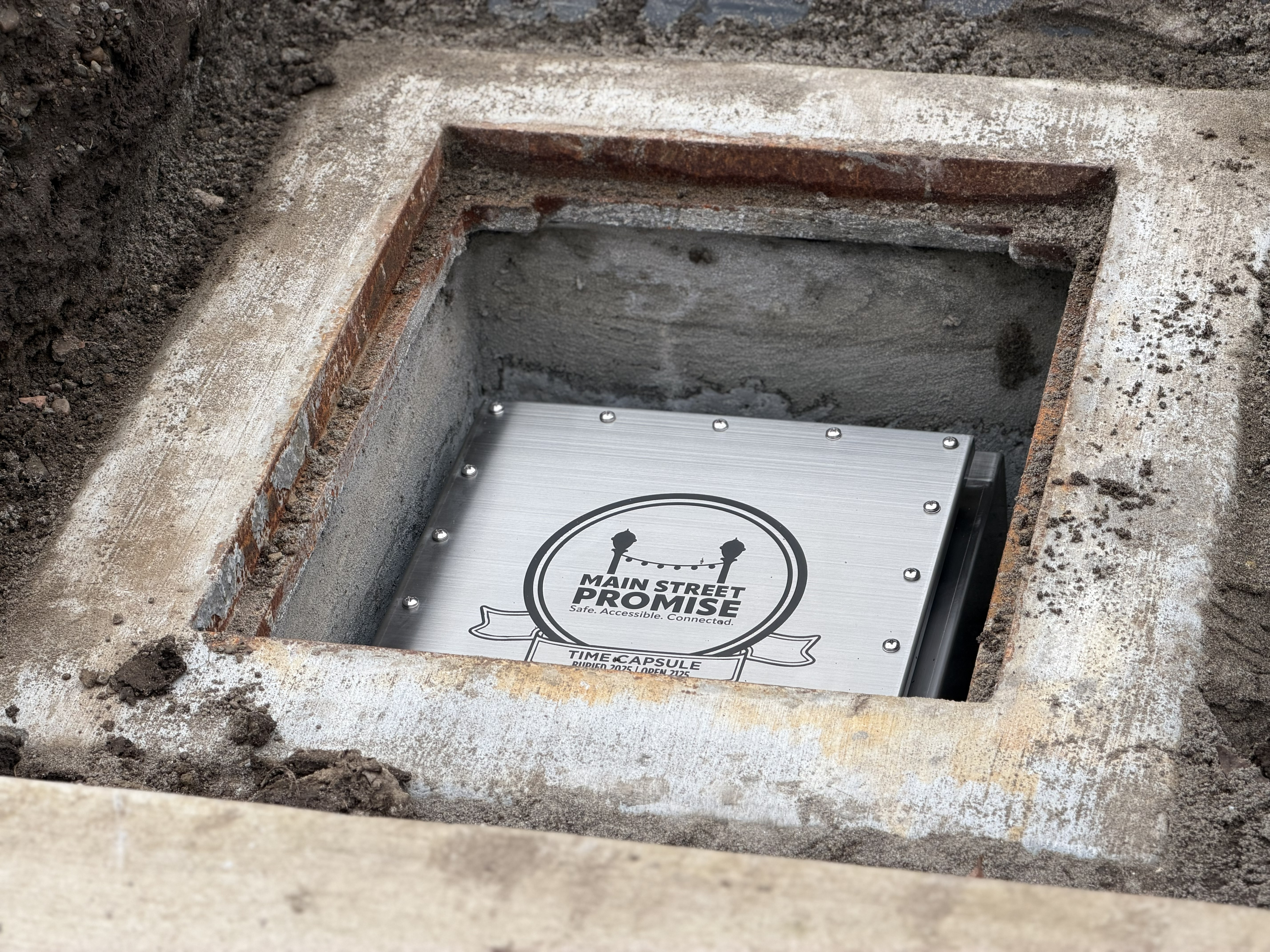 The capsule was buried by the Main Street Promise team, leaders of a multi-year project to rebuild and revitalize Vancouver’s historic Main Street corridor from 5th to 15th Street. The project includes reconstructing the street, sidewalks, lighting, and adjacent public spaces to create a safer, more accessible, and welcoming environment for residents, businesses, and visitors. Main Street Promise aims to enhance safety, strengthen community connections, and support long-term economic vitality in downtown Vancouver. The project is expected to be completed in 2026.