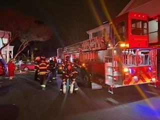 Accessing the fire, however, proved challenging. The residence sat at the top of a long, narrow, and steep driveway, limiting apparatus access. LFD managed to get one engine and one tender to the top, while additional firefighters, tools, and equipment had to be shuttled up the driveway using staff vehicles.