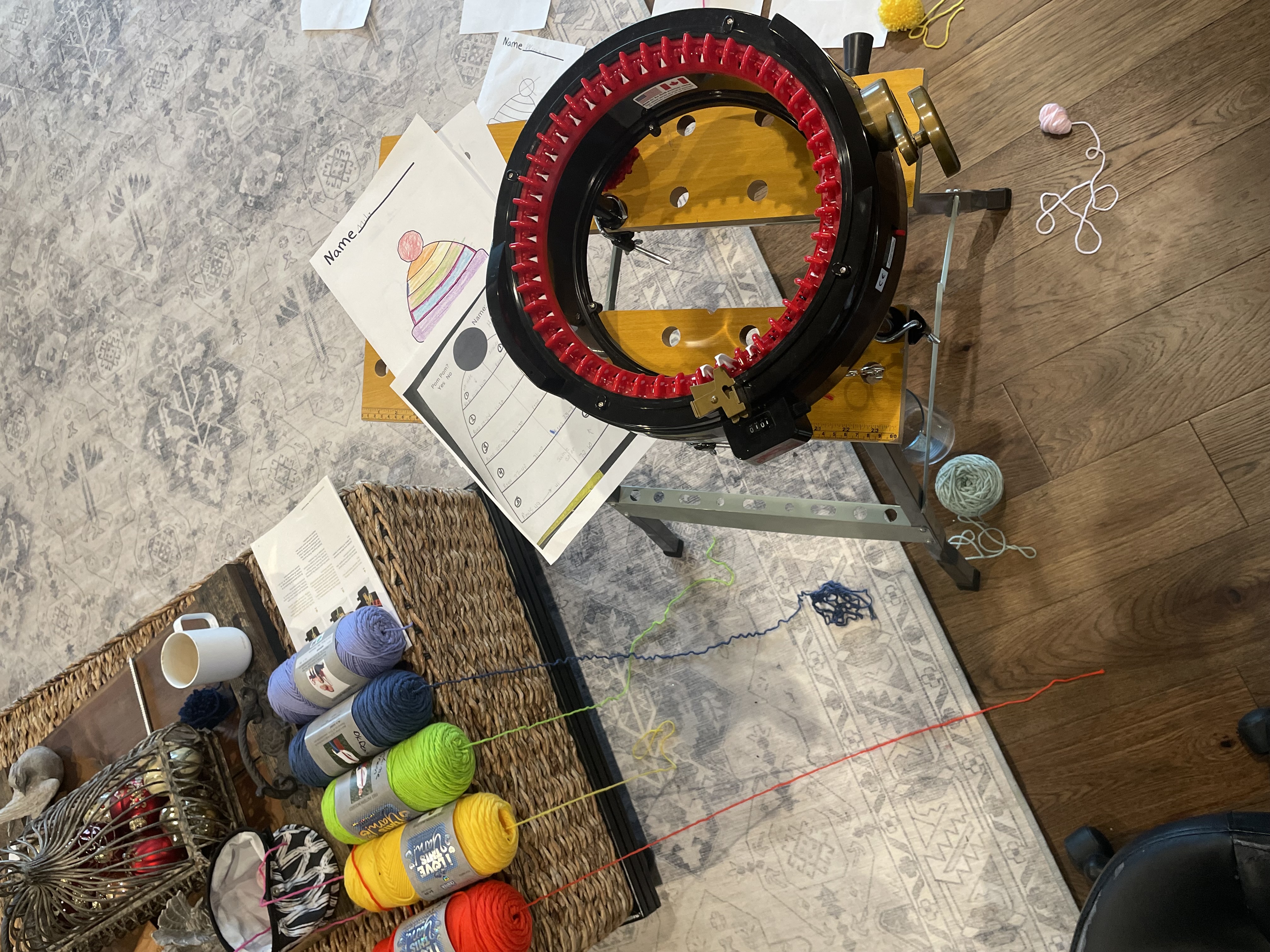 With a circular hand-crank knitting machine and a little help from her 11-year-old grand-niece, Emily (who also happens to be Ashley’s daughter), LaFave knitted 23 one-of-a-kind hats, each inspired by a student’s original design.