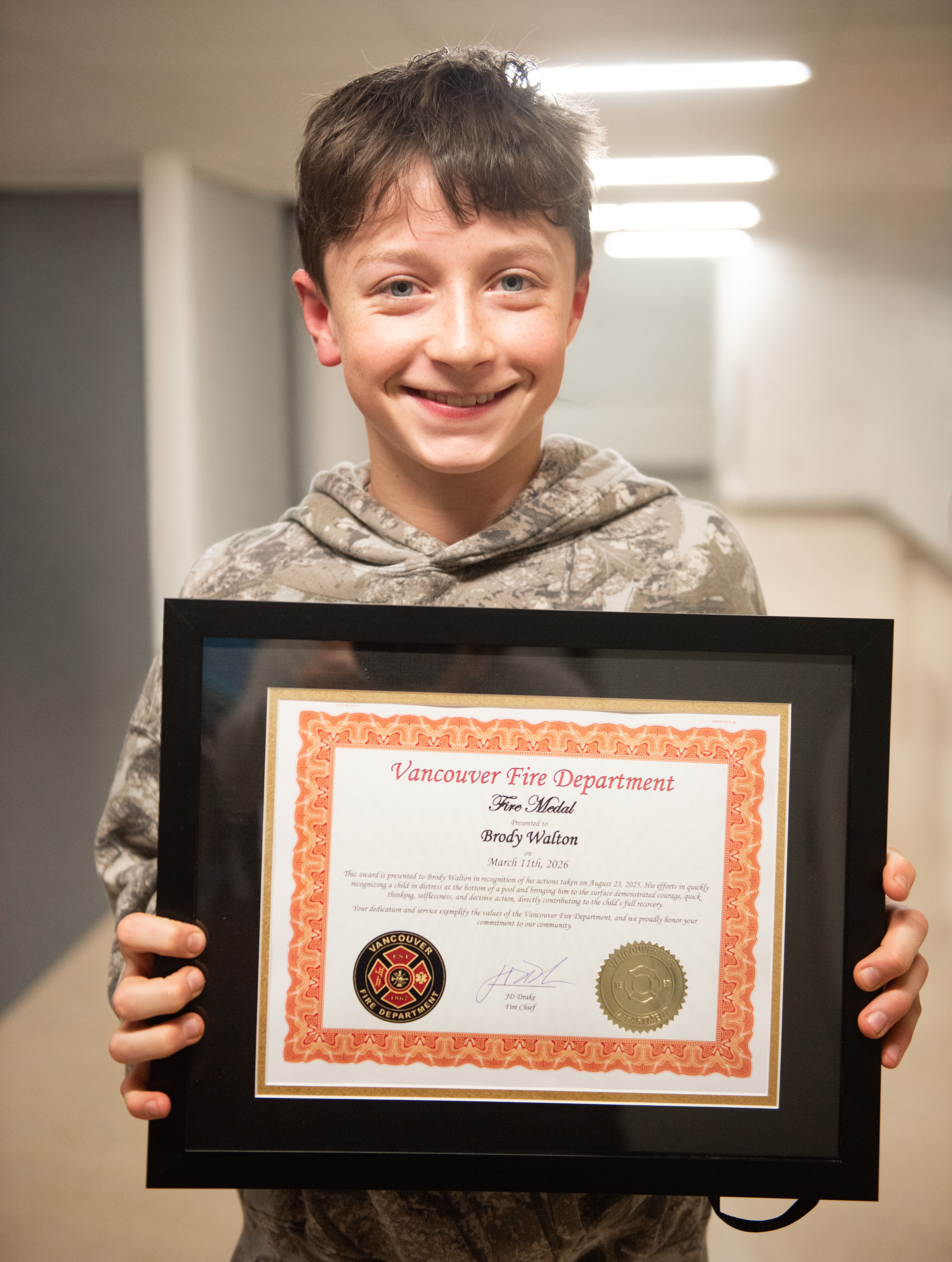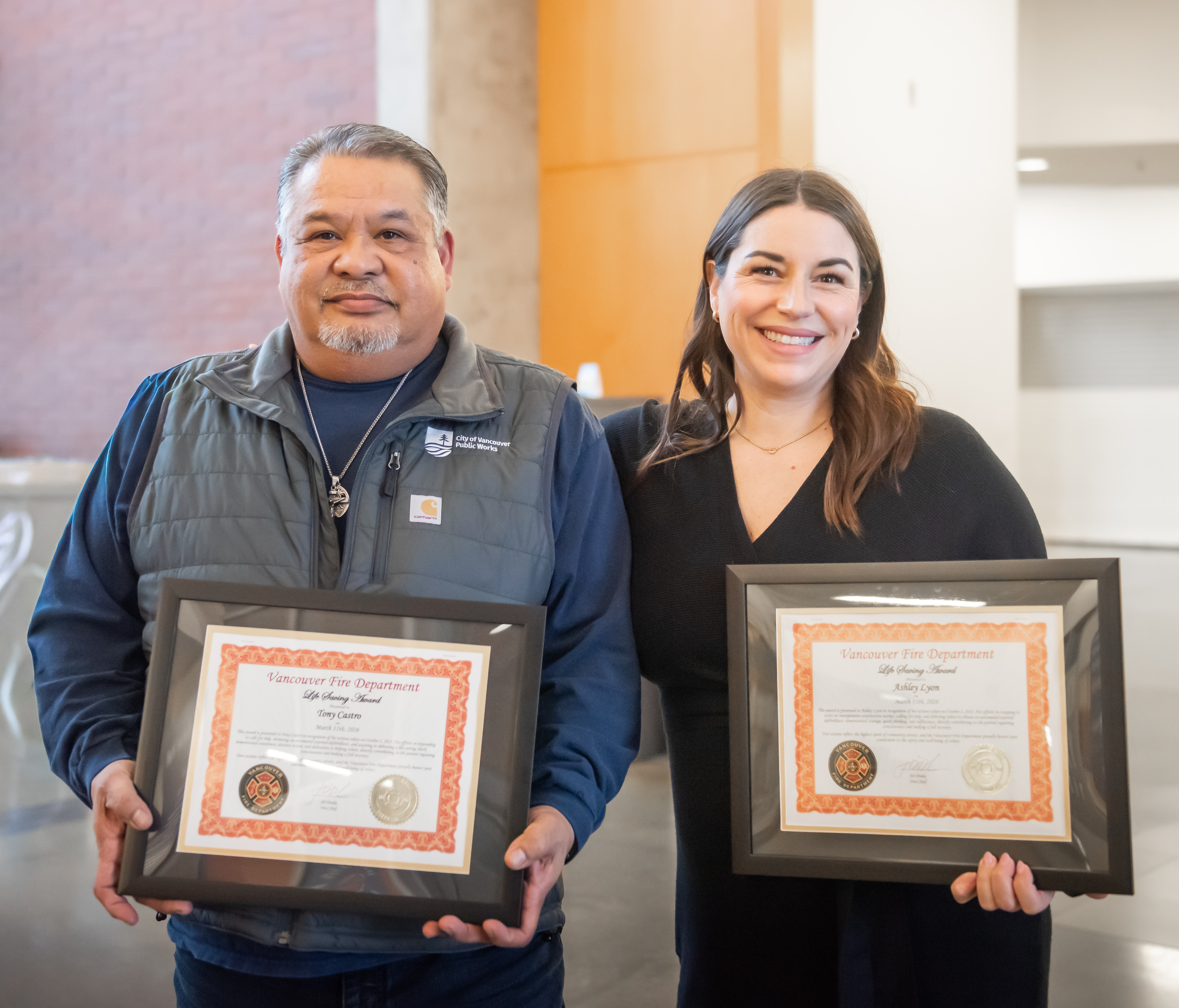 “These awards recognize moments when people chose to act, often in the most difficult and dangerous circumstances,” said Fire Chief John “JD” Drake. “Whether it’s a firefighter entering cold water to rescue someone, a citizen helping a stranger or a team working through the night during a major incident, these actions reflect the courage, skill and commitment that help keep Vancouver safe.”