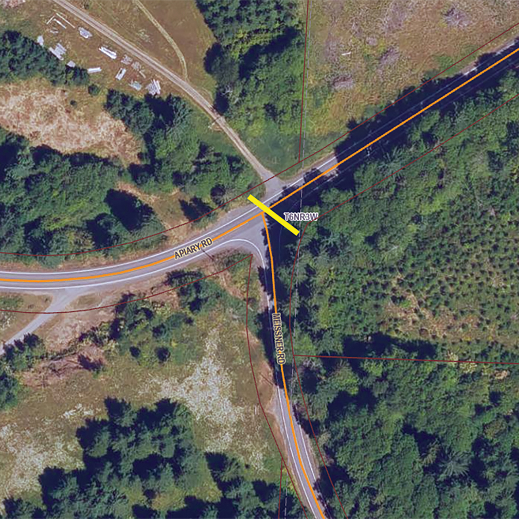 A culvert northeast of the Apiary Road and Meissner Road intersection has separated, partially undermining the north lane. Crews have installed temporary advisory signage and cones to shift traffic to the south side of the roadway while repairs are planned. Public Works crews will excavate the area, restore the roadway, and repair the culvert. Additional updates will be provided as repair work is scheduled.