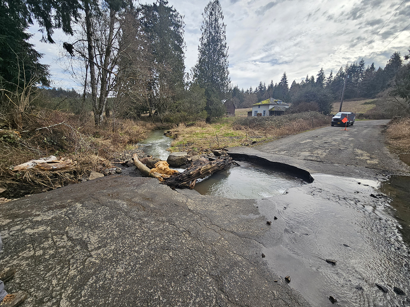 Members of the public who encounter flooding, standing water, downed trees, or other issues on county roads are encouraged to report it by calling 564.397.2446 or using the online form at clark.wa.gov/public-works. As Public Works receives these reports, staff respond to the location of the issue and assess the situation. Where our crews are able to solve the issue, for example, by removing leaves from a clogged storm drain or moving a fallen tree off the roadway, they are doing so as quickly as possible. In many cases, such as when rising rivers and creeks flood roads and bridges, the only recourse is to close the road and wait for the creek, stream, or river levels to decrease.