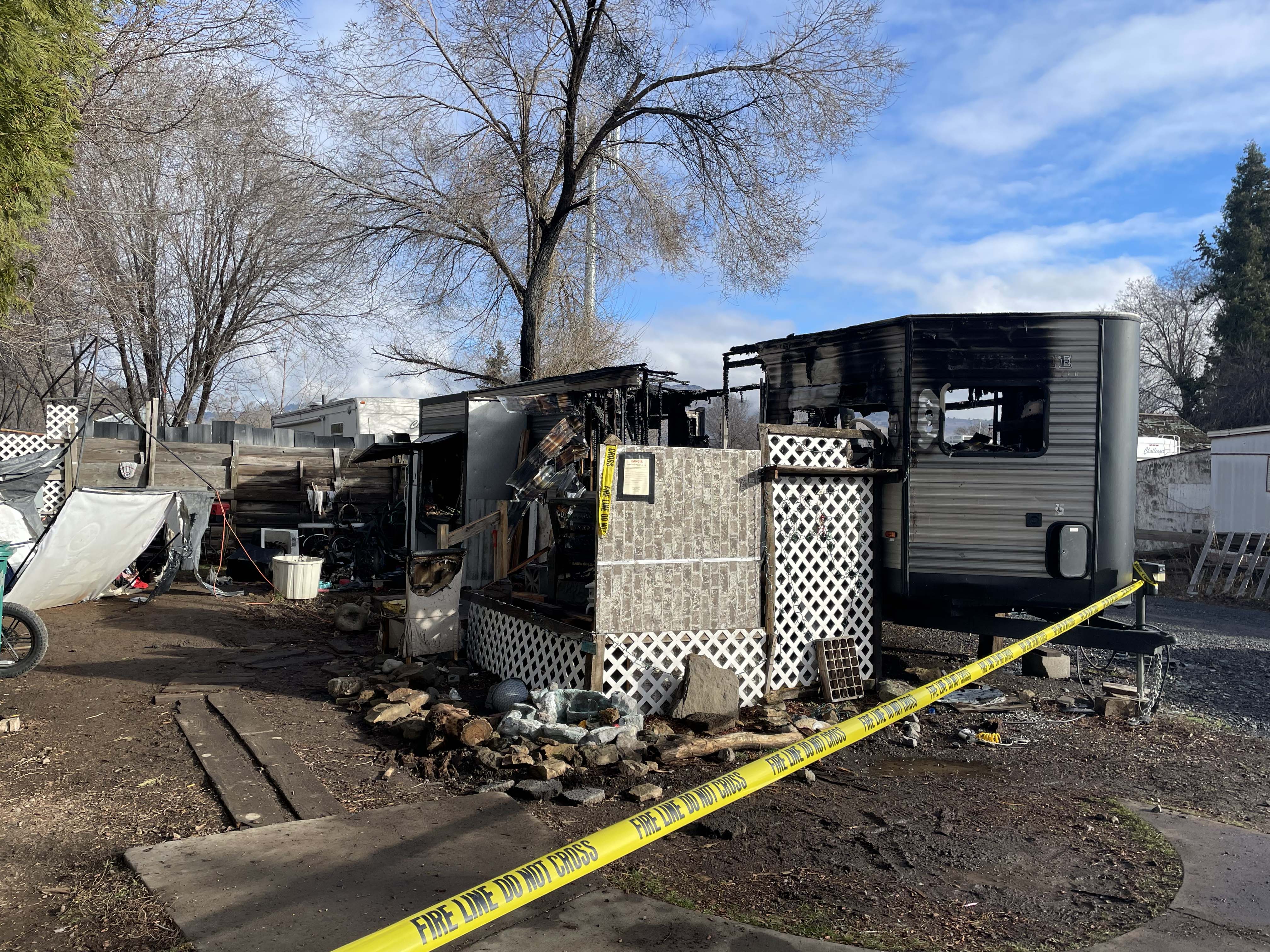 One adult occupant was able to escape the trailer by exiting through an emergency egress window at the rear of the residence after being unable to access the primary entry/exit door, which had become engulfed in flames. That individual sustained smoke inhalation and burn injuries and was transported by Klamath County Fire District 1 personnel to Sky Lakes Medical Center for treatment.