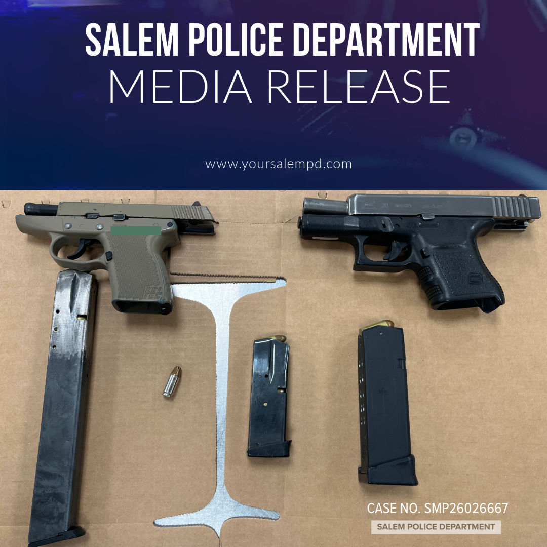 In 2025, the Salem Police Department seized 295 firearms in connection with criminal investigations. So far this year, the department has seized a total of 106 firearms in connection with criminal investigations. The department remains committed to the Community Violence Reduction Initiative (CVRI) and is dedicated to reducing violent crime and holding individuals accountable for their actions in our community.