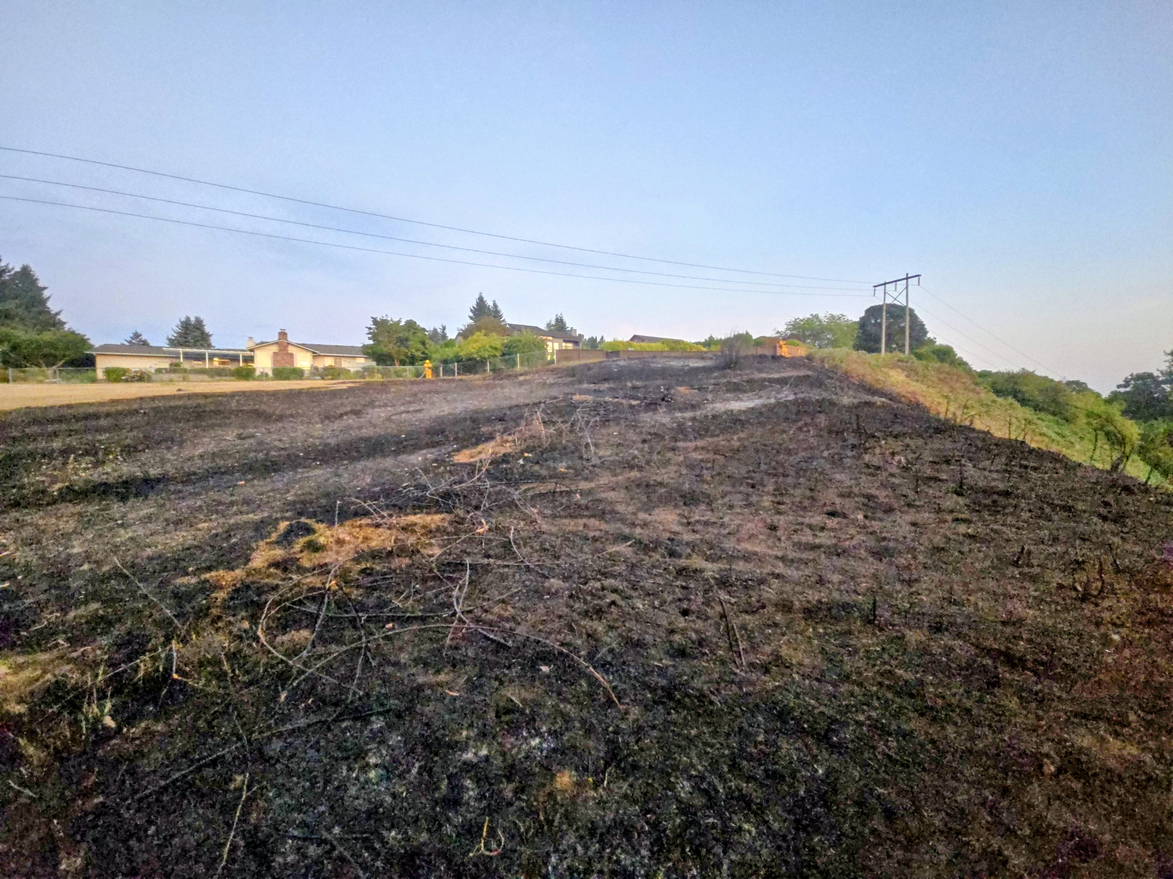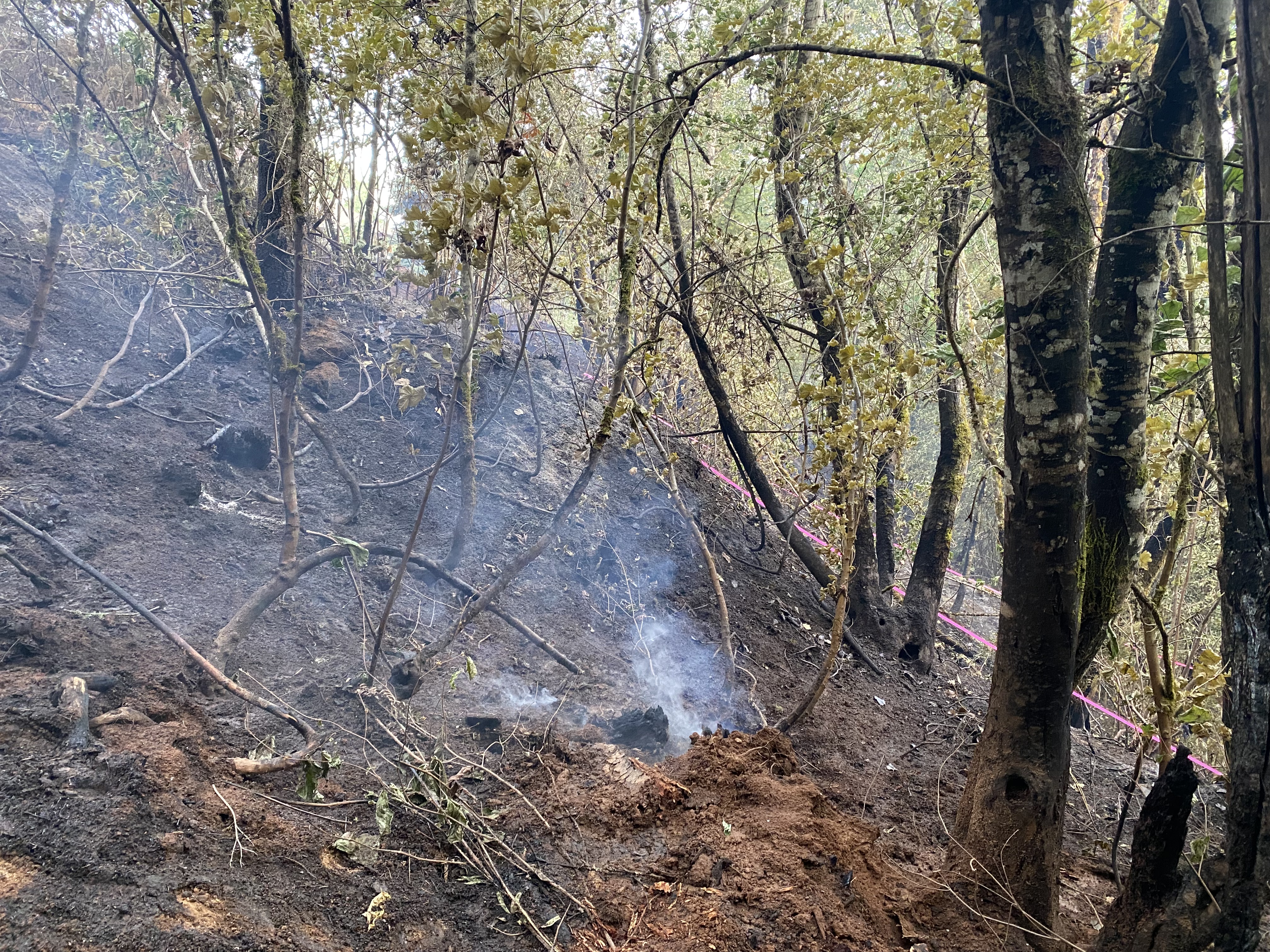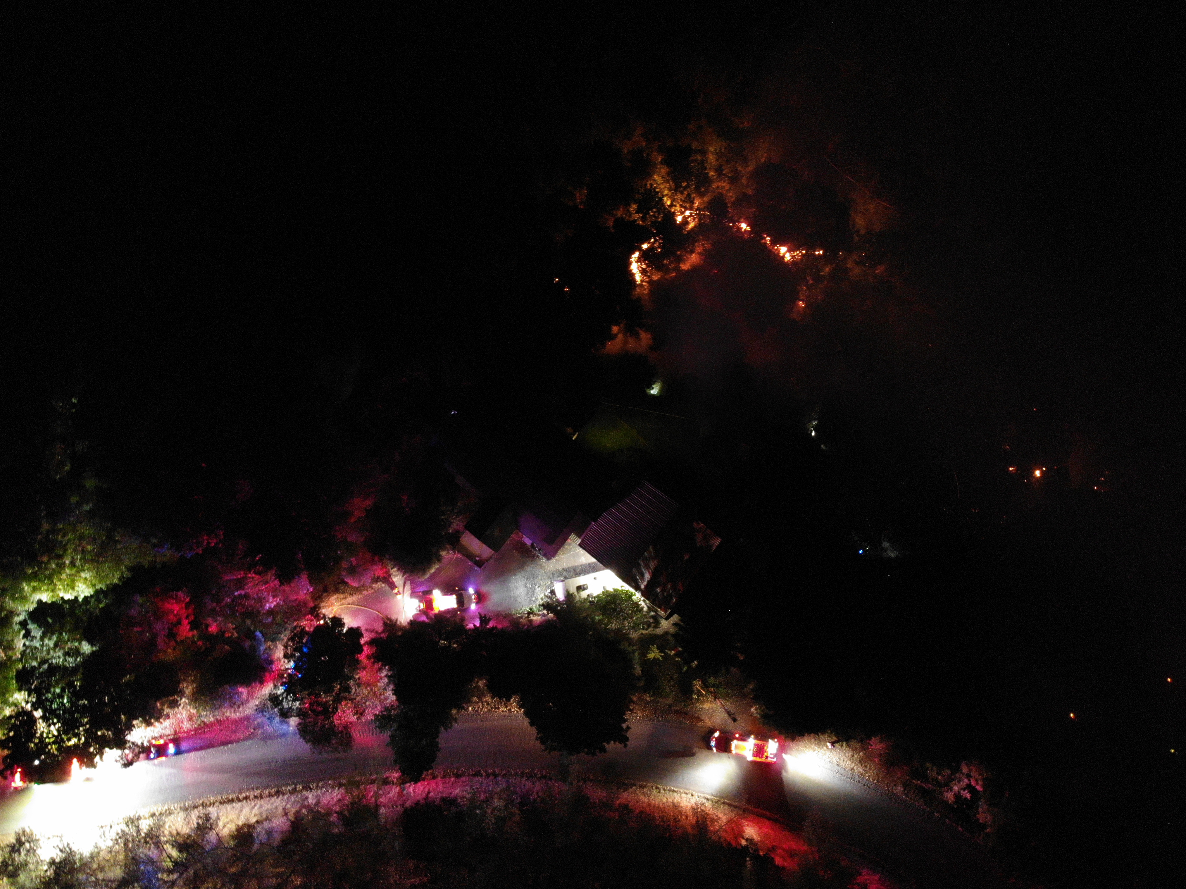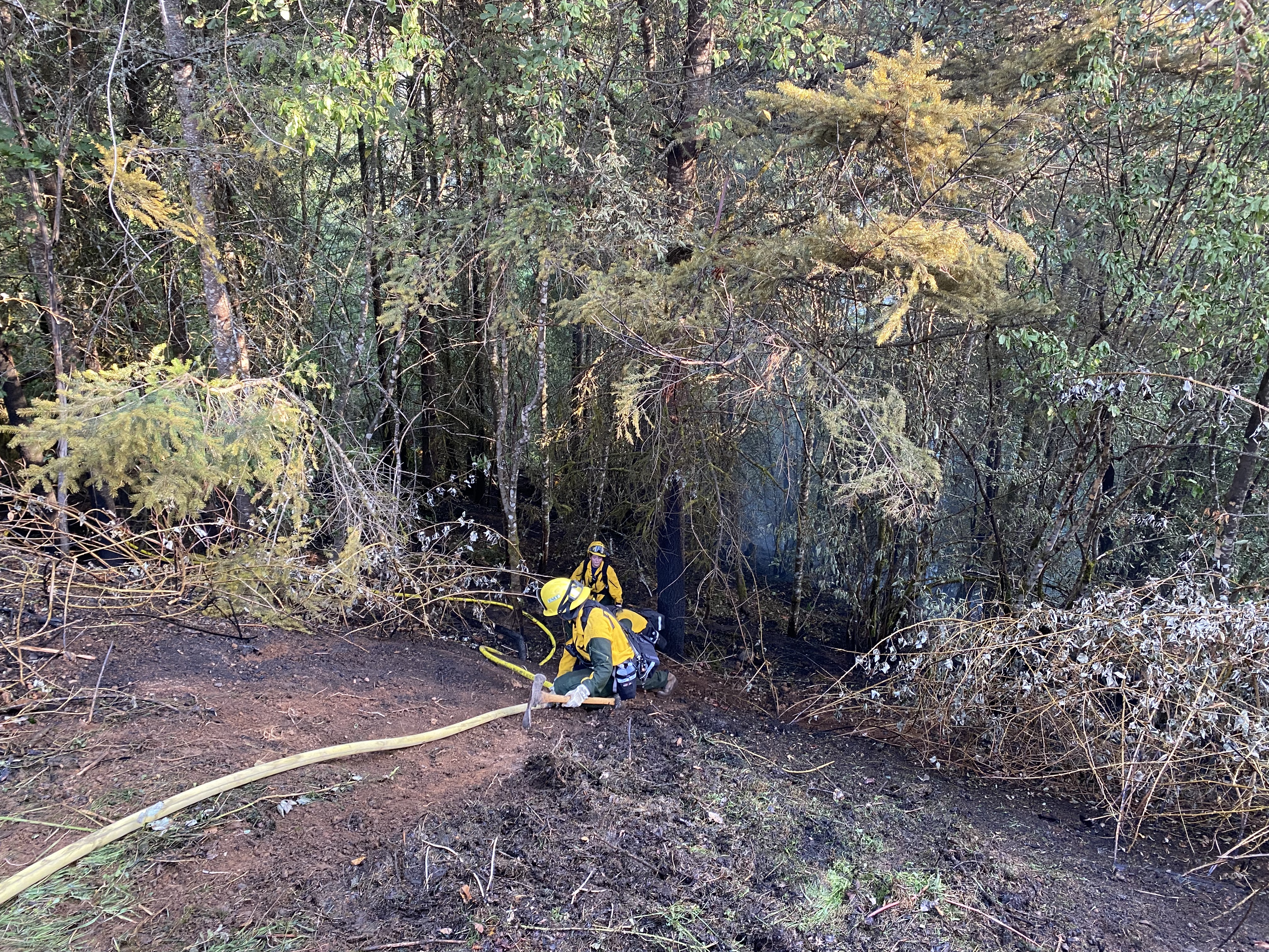 Despite the difficult terrain, firefighters contained and extinguished the fire quickly. Crews remained on scene for approximately three hours to fully extinguish hot spots and ensure the structure was safe.