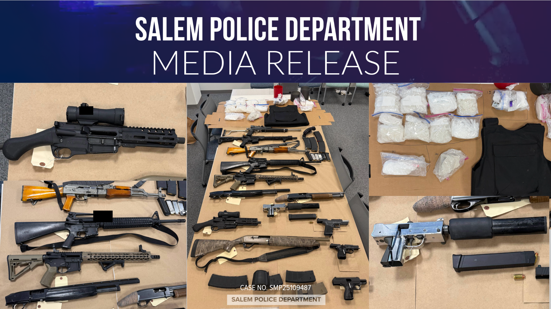 Salem, Ore. — Salem Police detectives with the Strategic Investigations Unit served a search warrant on December 22, 2025, at a residence on 18th Street NE, resulting in the seizure of a significant quantity of firearms and illegal drugs.