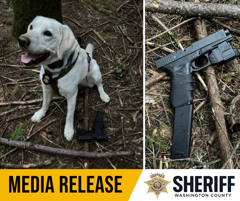 Detectives from the Sheriff’s Office Violent Crimes Unit and the Washington County Major Crimes Team responded to lead the investigation. An explosives detection K9 from the Bureau of Alcohol, Tobacco, and Firearms was called in to assist with the search. K9 Moby located a pistol near the scene.