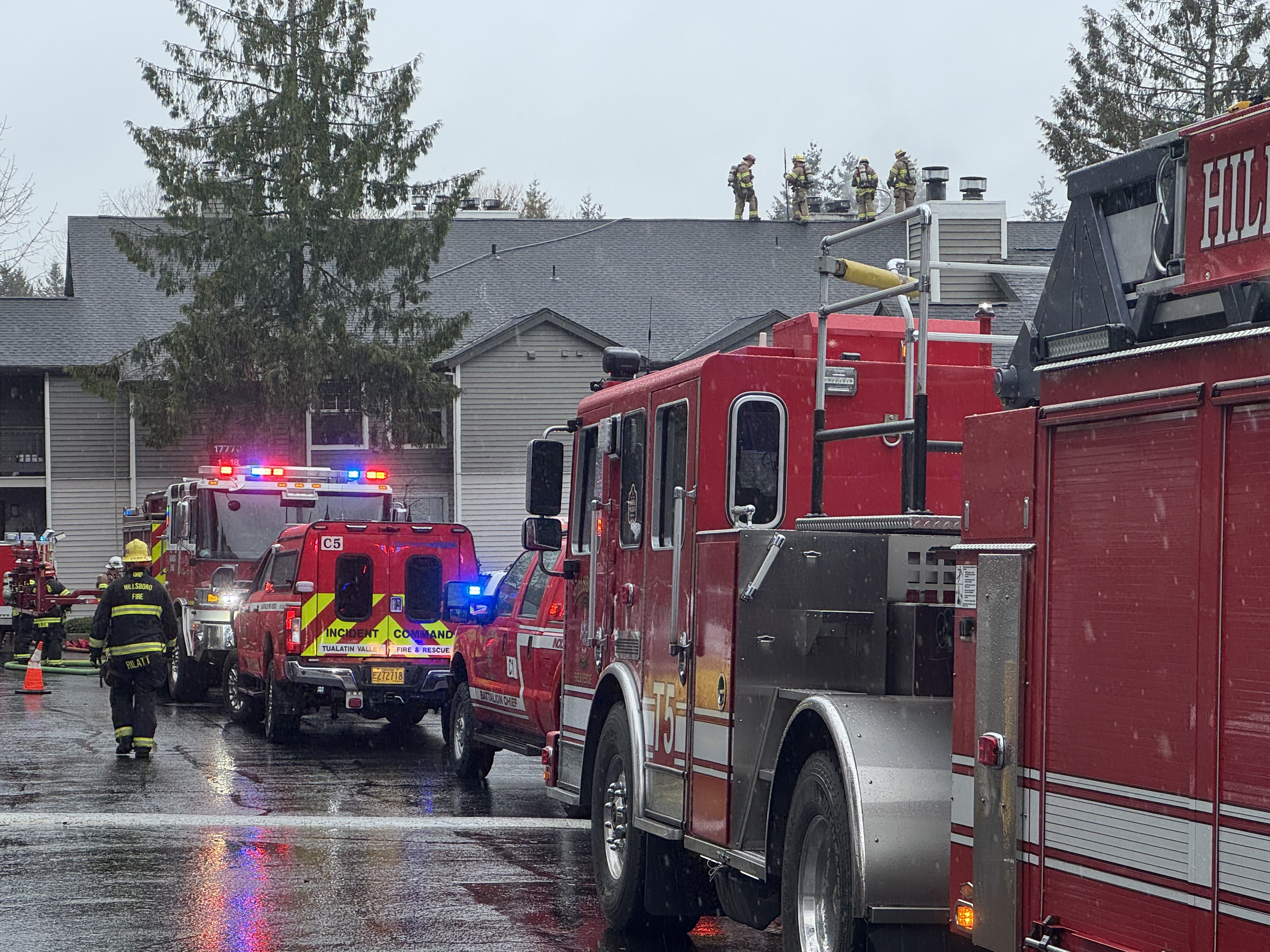 Second Alarm Apartment Fire on NW Cornell Road Contained; Six Units Damaged (Photo)Firefighters contained a second‑alarm fire at a three‑story, 18‑unit apartment building in the 17700 block of Northwest Cornell Road in Beaverton this morning. Crews were dispatched at approximately 8:09 a.m. after 911 callers reported smoke and flames, and first‑arriving units found heavy fire showing from the back of the structure with extension toward the roof and attic. Law enforcement assisted as evacuations were already underway when firefighters arrived.