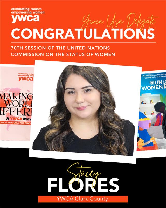 This year, YWCA Clark County will be represented by Stacy Flores, who is identified as one of YWCA USA’s Emerging Leaders. Flores will join delegates from across the country in New York City from March 9–13, 2026. Ten delegates were selected from across YWCA’s network of 193 Local Associations to represent YWCA USA’s mission and advocacy priorities. Reflecting the powerful diversity of our associations and their staff, delegates will participate in programming and events hosted by UN Women.